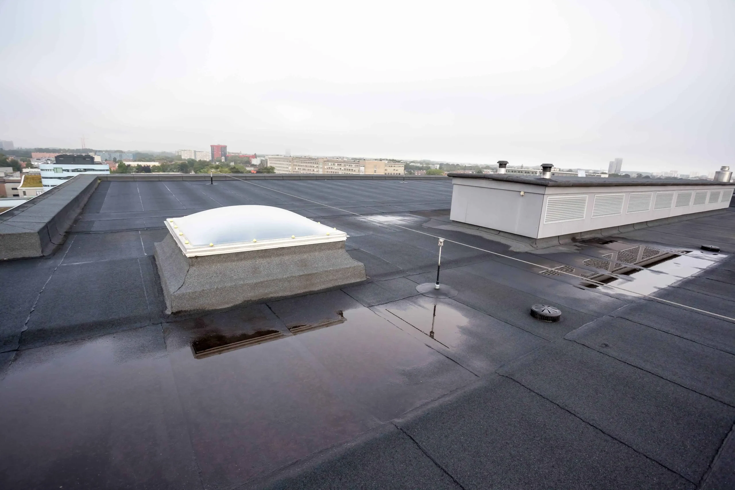Watertight flat roofing installations designed for durability and low maintenance.